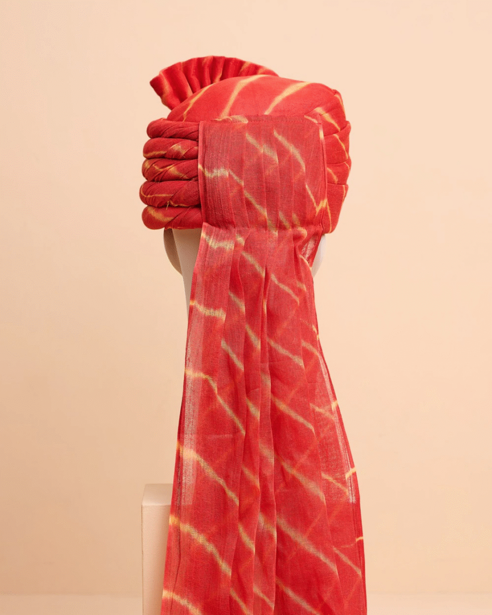 Red Bandhej Paisley Wedding Safa Pagdi Turban | Traditional Indian Groom & Guest Accessory