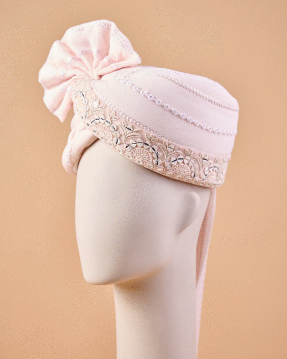 Safawala Light Pink Embroidered Barati Safa Feta Pagdi | Guest Turban Wedding Accessory