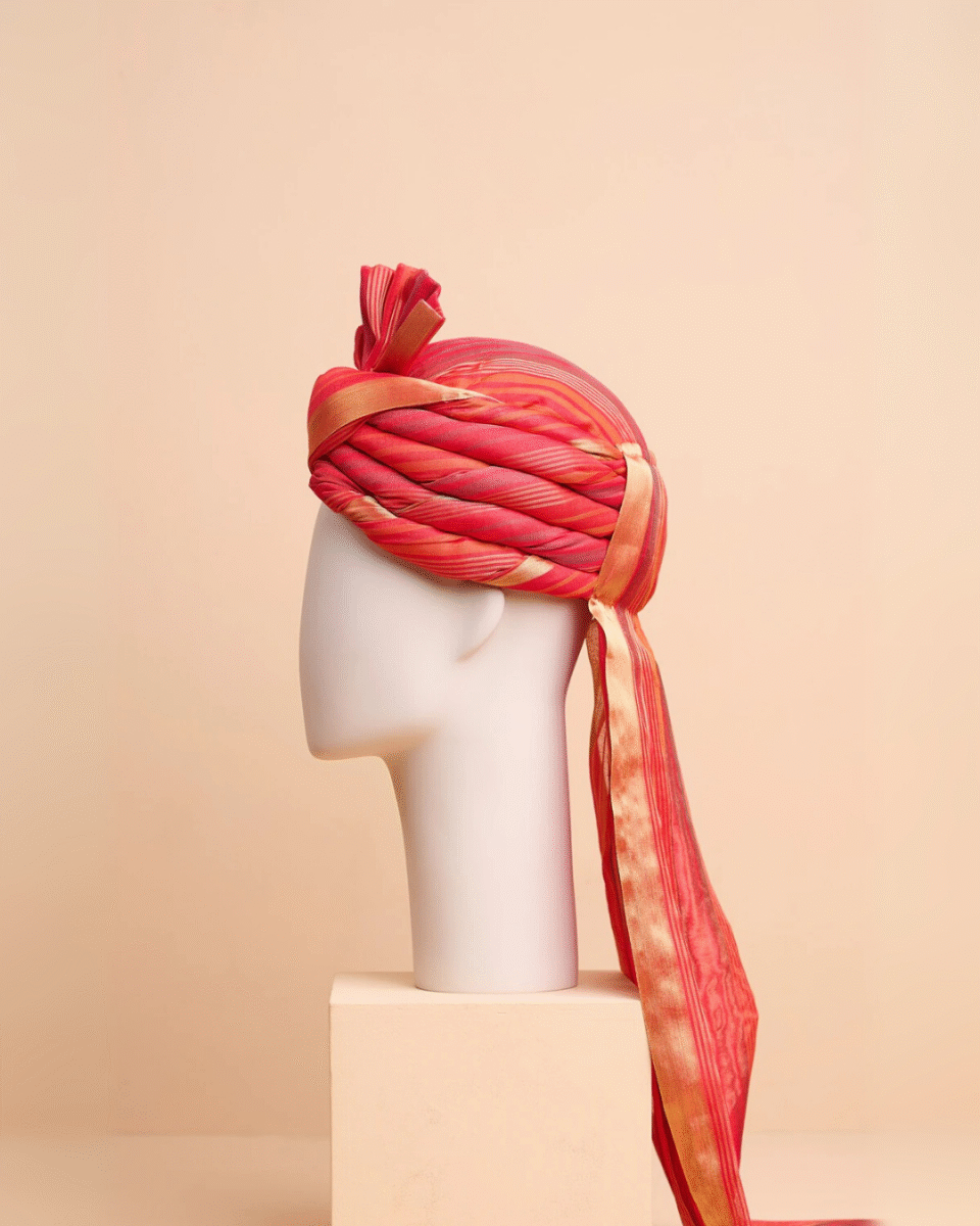 Rust Orange Stripe Wedding Safa Pagdi Turban | Stylish Indian Groom & Guest Accessory