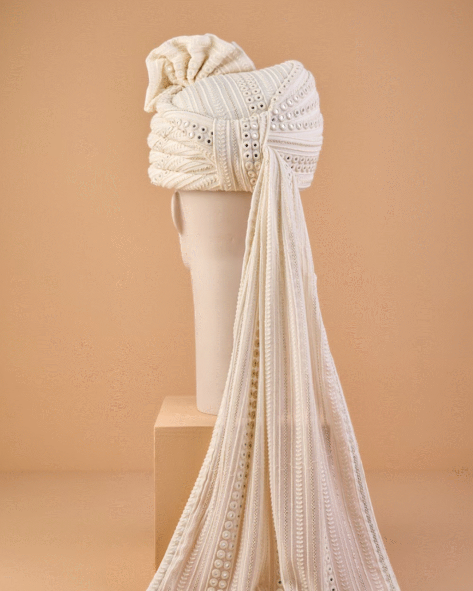 Off-White Wedding Barati Safa Pagdi Turban | Traditional Indian Guest Wedding Accessory
