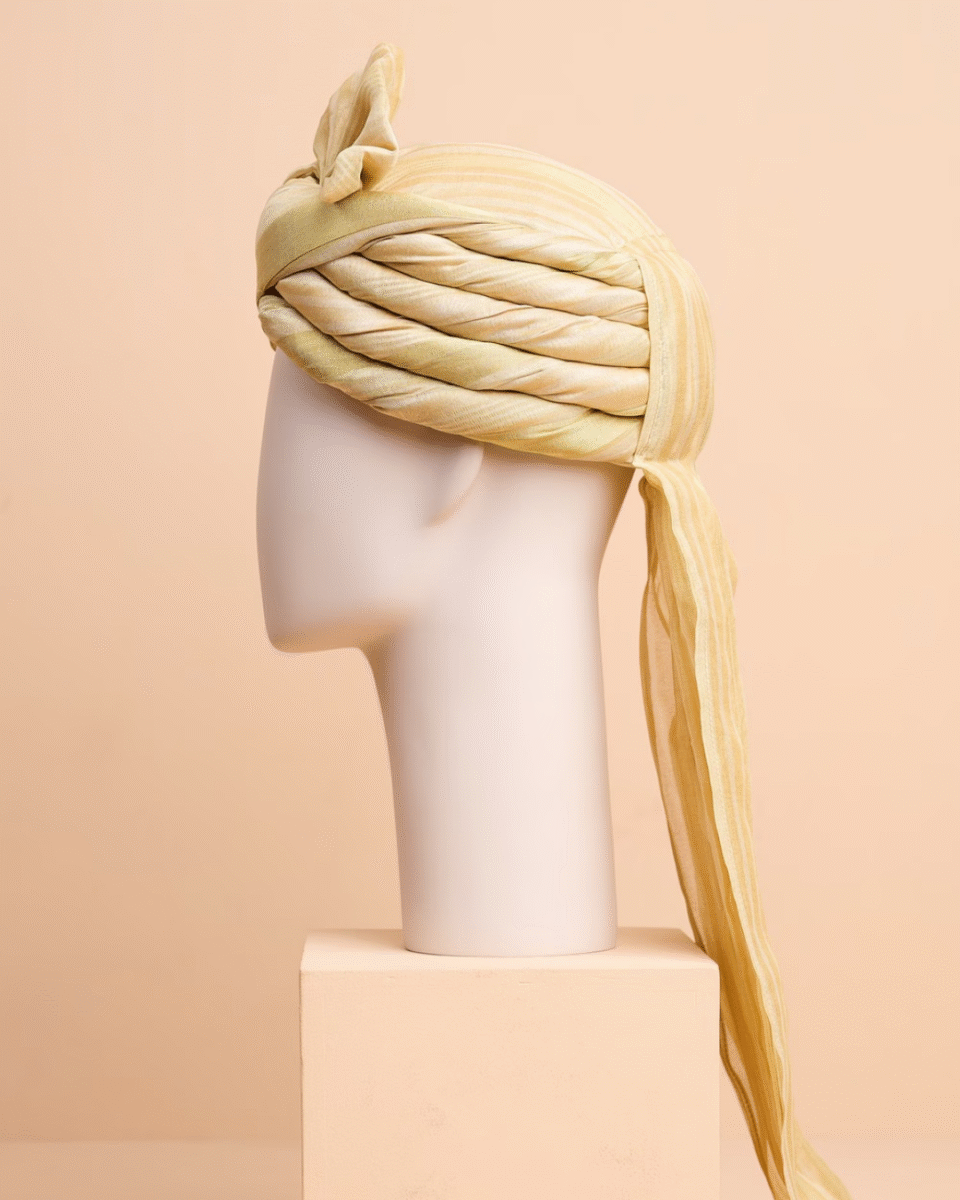 Golden Beige Textured Wedding Safa Pagdi Turban | Royal Wedding Indian Groom & Guest Accessory