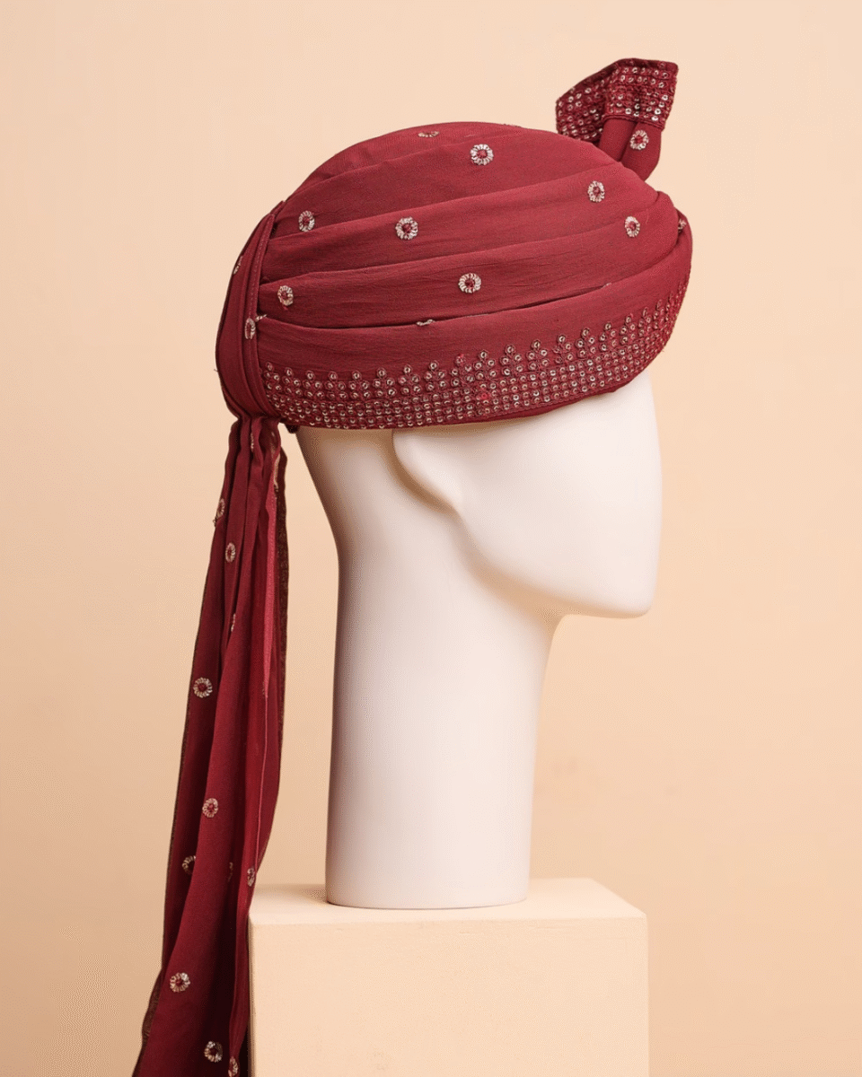 Ruby Accent Dot Feta Wedding Barati Safa Pagdi Turban | Traditional Indian Groom Guest Wedding Accessory