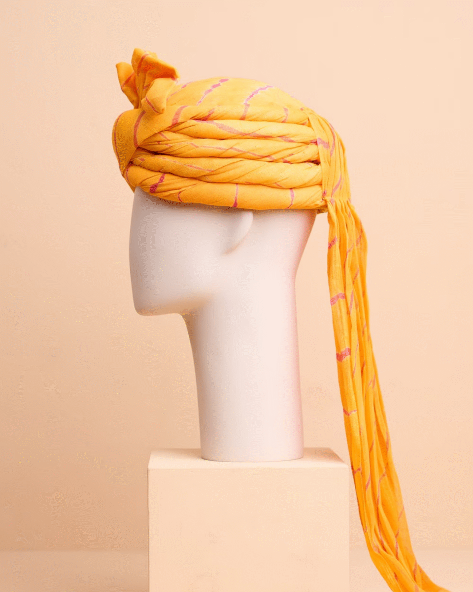 Mustard Yellow Wedding Barati Safa Pagdi Turban | Traditional Indian Guest Wedding Accessory