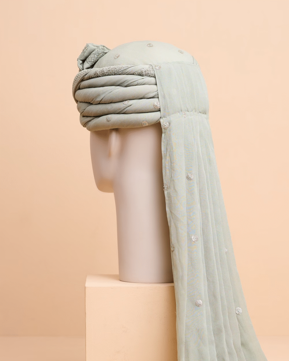 Sage Green Feta Wedding Barati Safa Pagdi Turban | Traditional Indian Guest Wedding Accessory