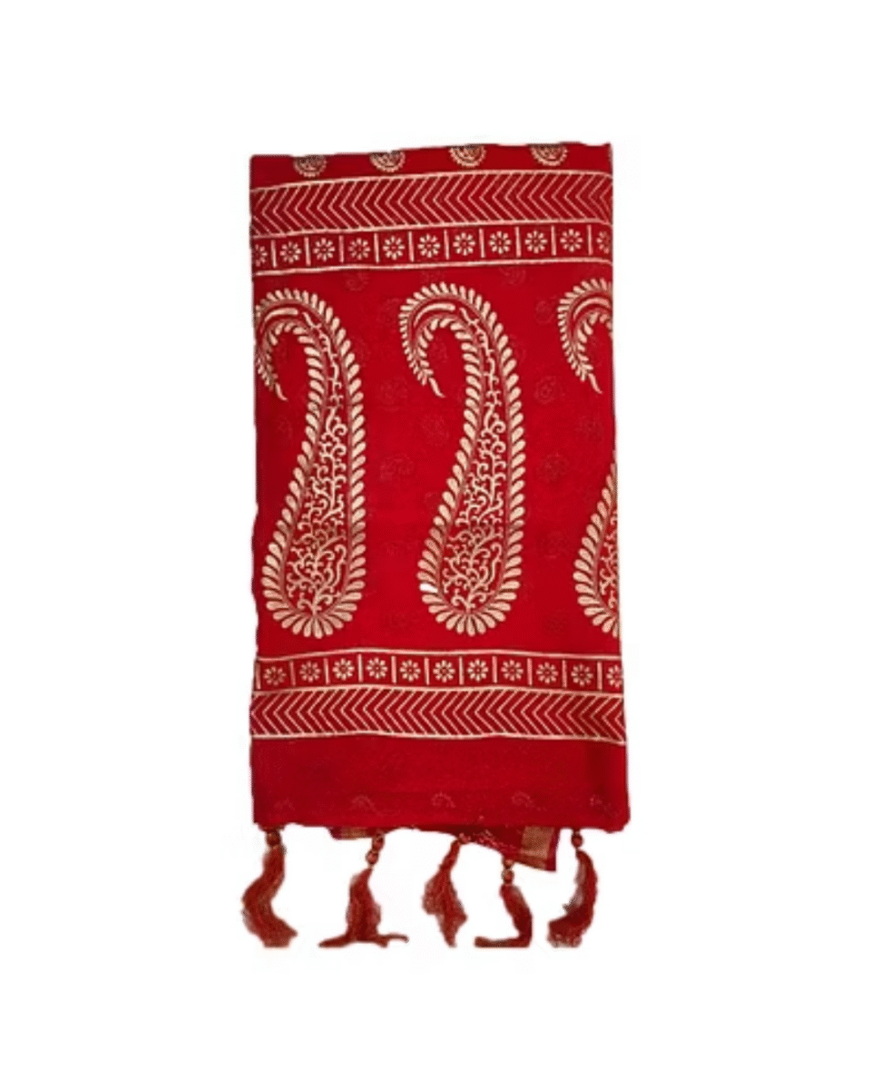 Safawala Red Bandhej Paisley Safa Cloth with Tassels | Traditional Indian Wedding Fabric