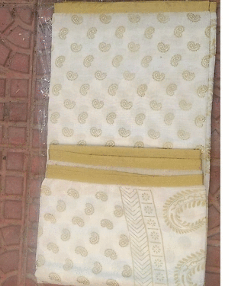 Safawala Off-White Solid Safa Cloth with Golden Border | Traditional Indian Wedding Fabric