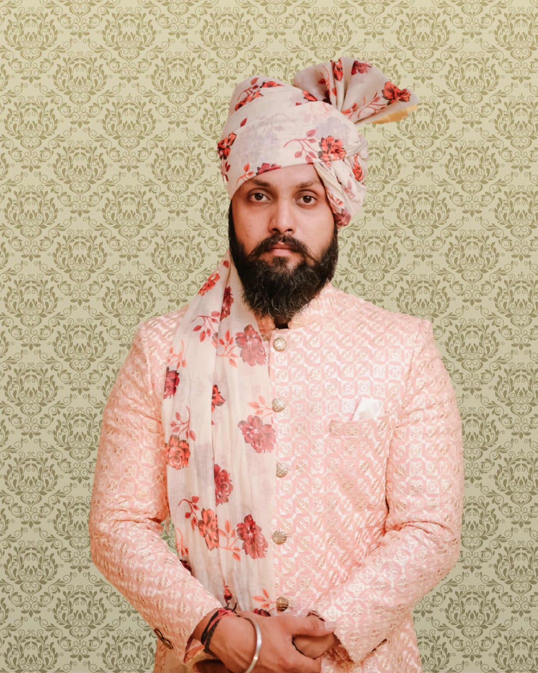 Blush Rose Floral Feta Wedding Barati Safa Pagdi Turban | Traditional Indian Groom Guest Wedding Accessory