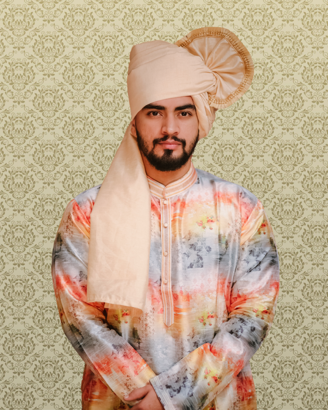 Champagne Glow Feta Wedding Barati Safa Pagdi Turban | Traditional Indian Groom Guest Wedding Accessory