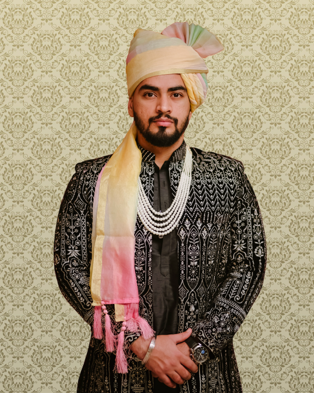 Champagne Rose Ombre Feta Wedding Barati Safa Pagdi Turban | Traditional Indian Groom Guest Wedding Accessory