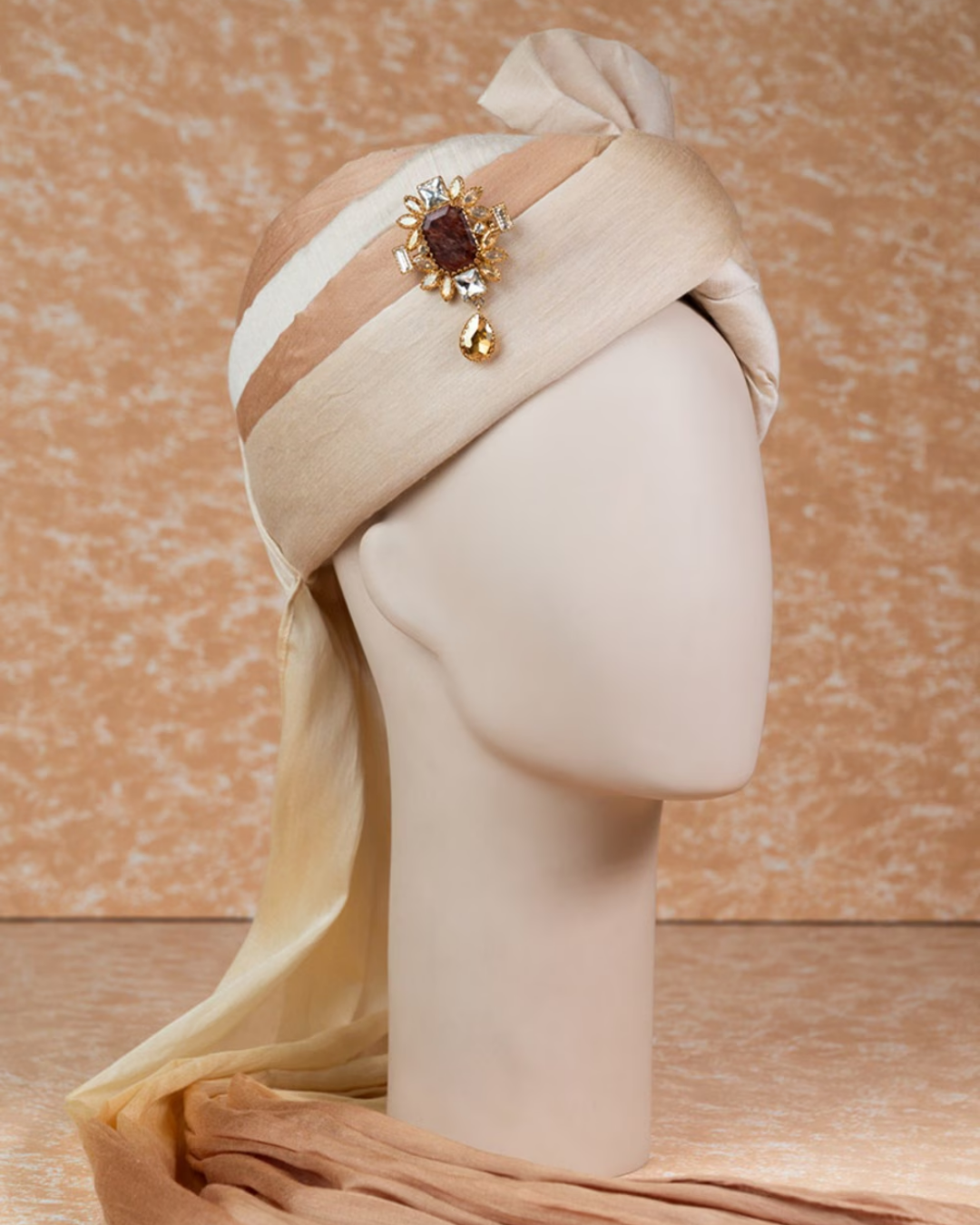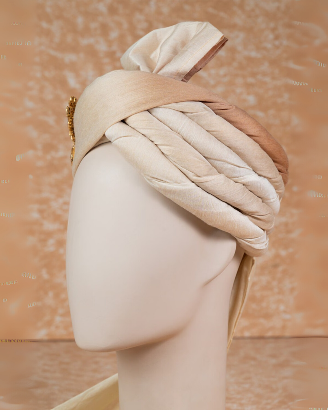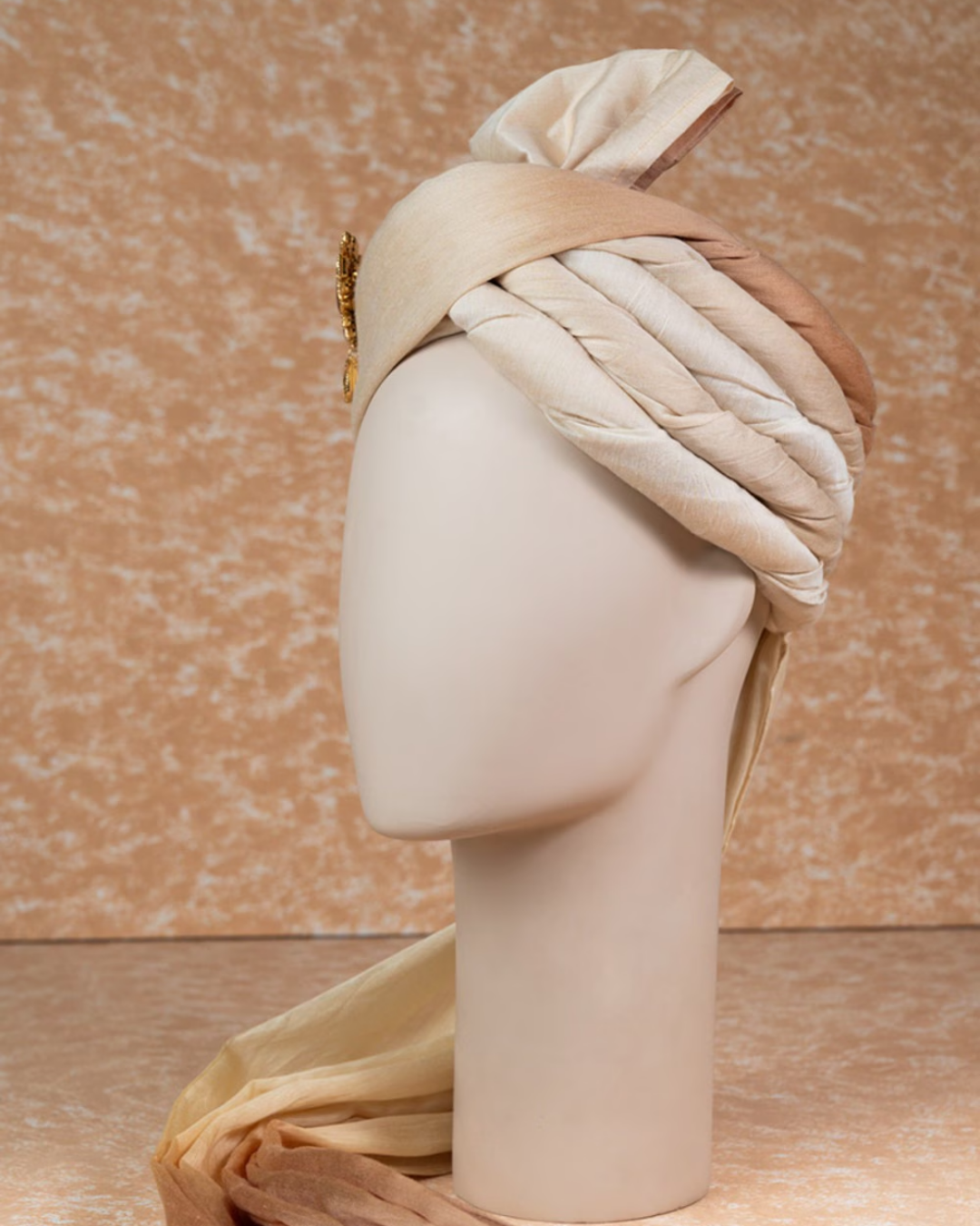 Ivory Gold Regal Feta Wedding Groom Safa Pagdi Turban with Brooch | Traditional Indian Wedding Accessory