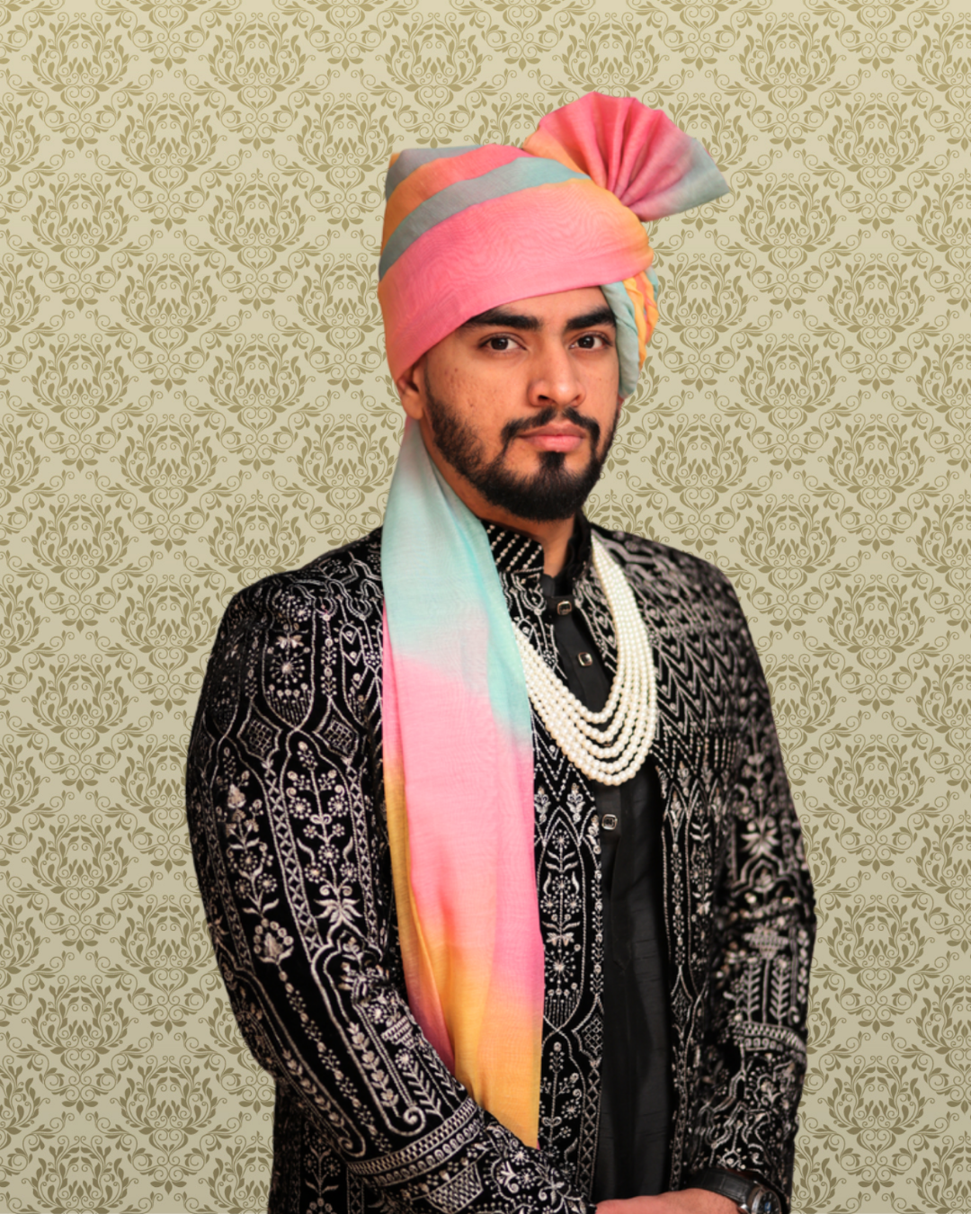 Multicolor Rainbow Wedding Safa Pagdi Turban | Vibrant Indian Groom & Guest Accessory