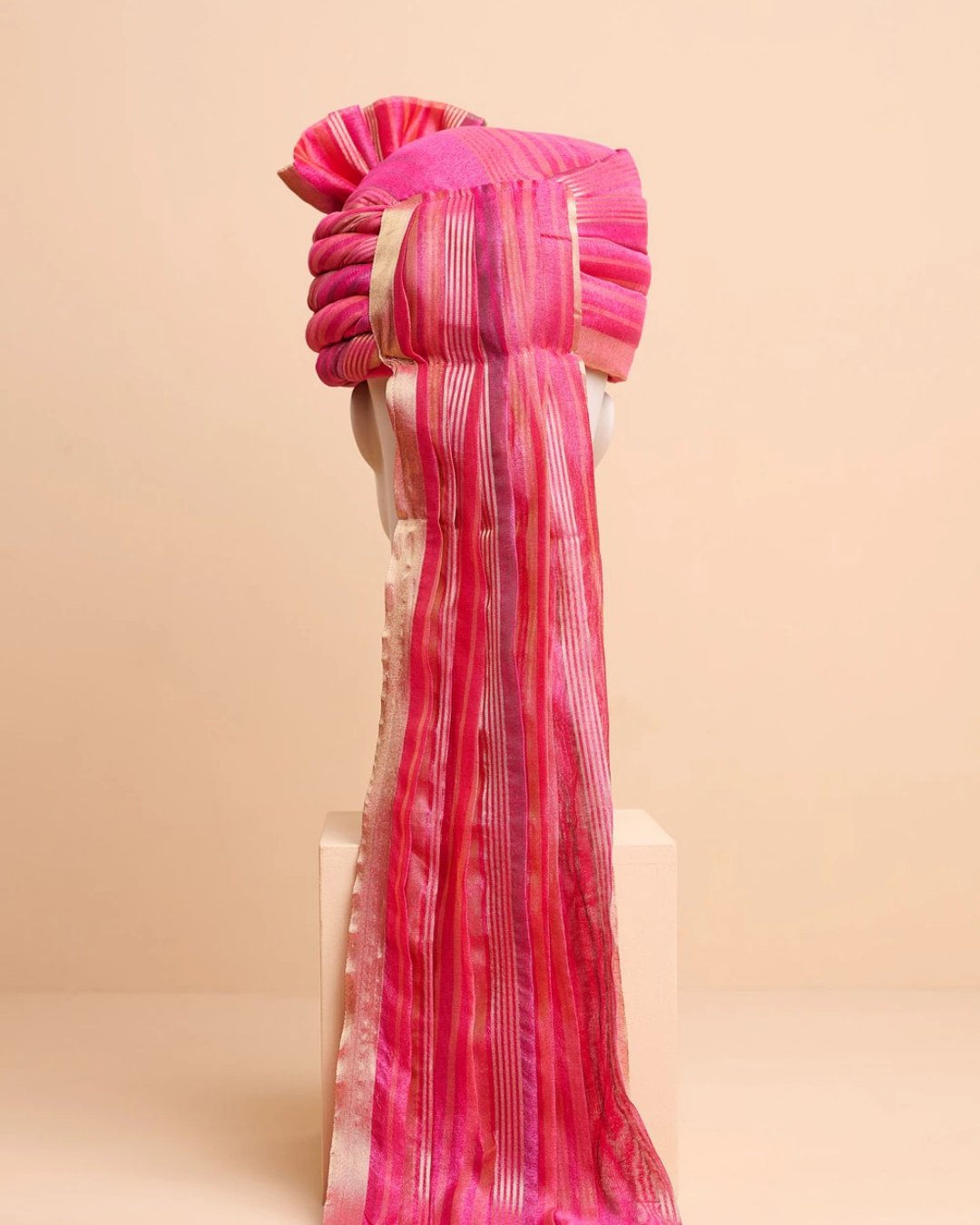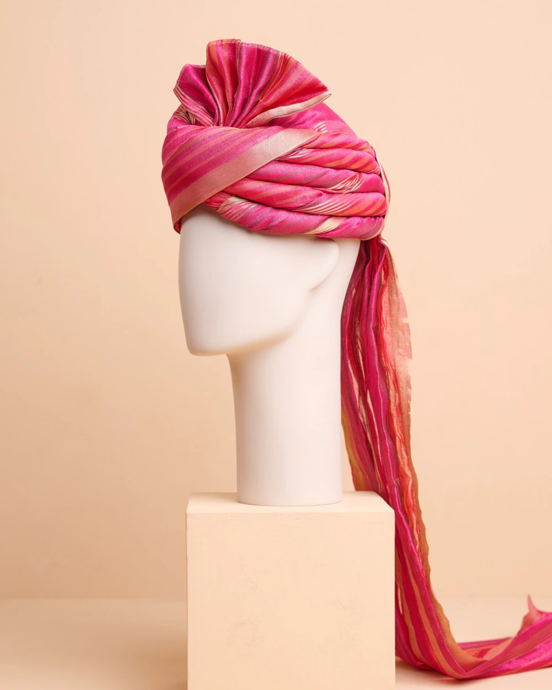 Multitone Pink Wedding Barati Safa Pagdi Turban | Traditional Indian Guest Wedding Accessory