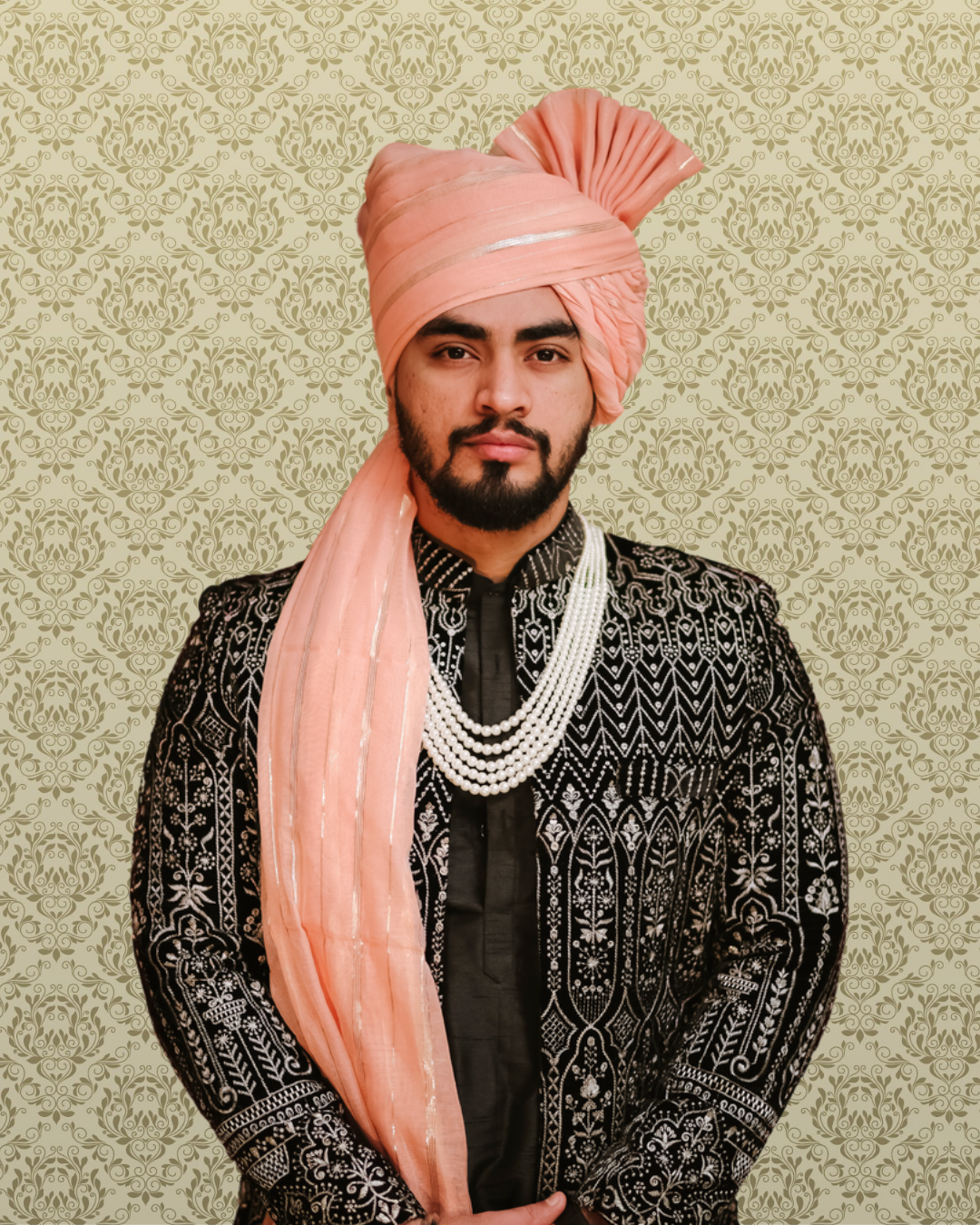 Peach Elegance Feta Wedding Barati Safa Pagdi Turban | Traditional Indian Groom Guest Wedding Accessory quantity