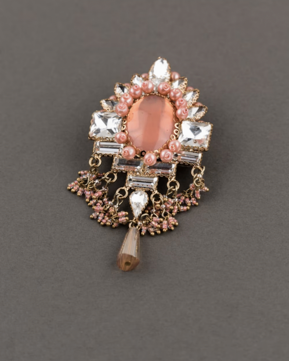 Safawala Peach Gemstone Designer Brooches | Groom Turban Pagdi Sherwani Wedding Accessory