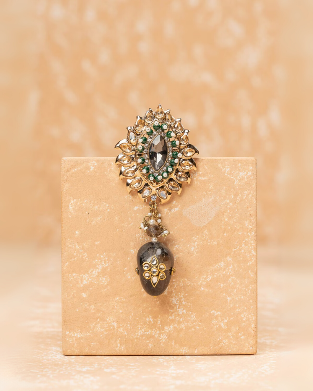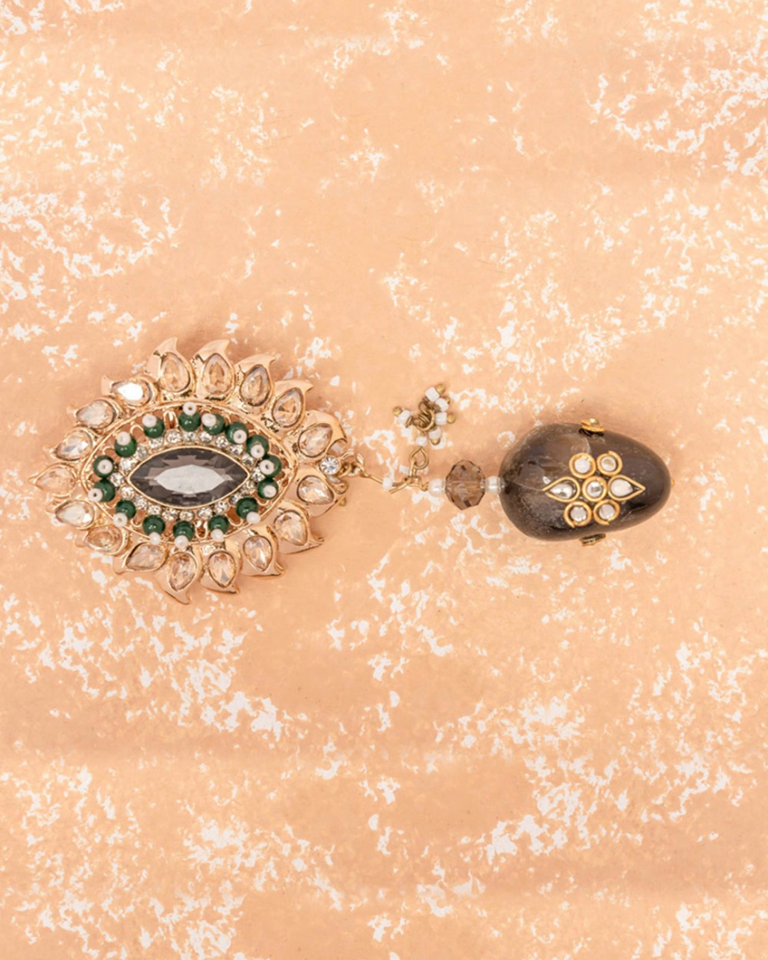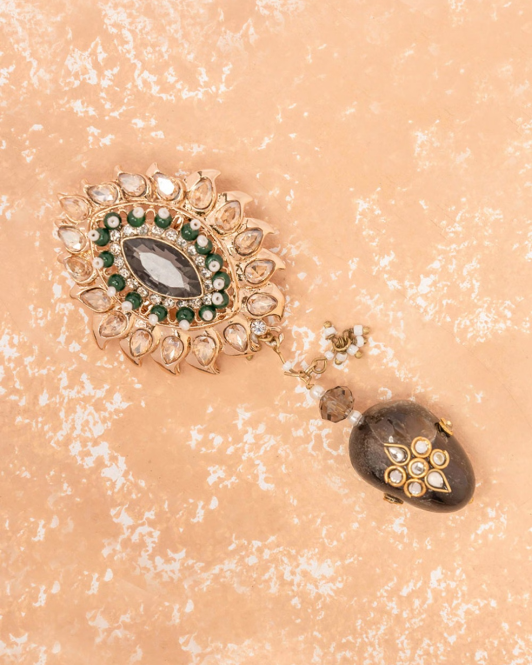 Safawala Green Oval Stone Brooches | Groom Turban Pagdi Sherwani Wedding Accessory
