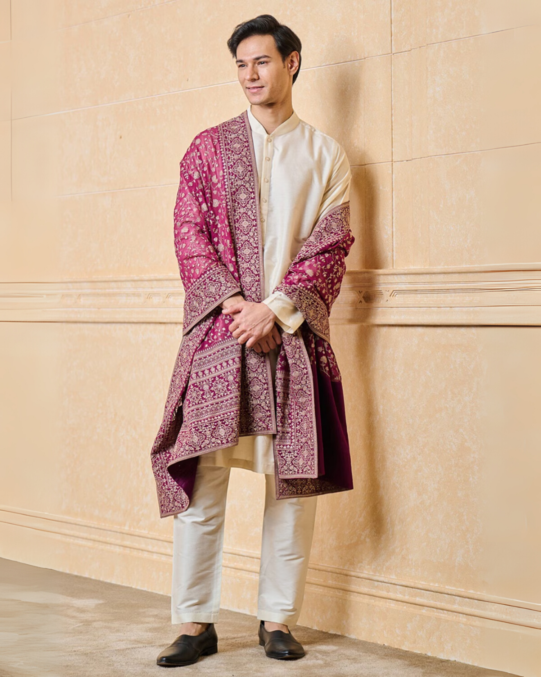 Safawala Magenta Embroidered Dupattas & Wedding Stoles | Festive Wedding Accessories