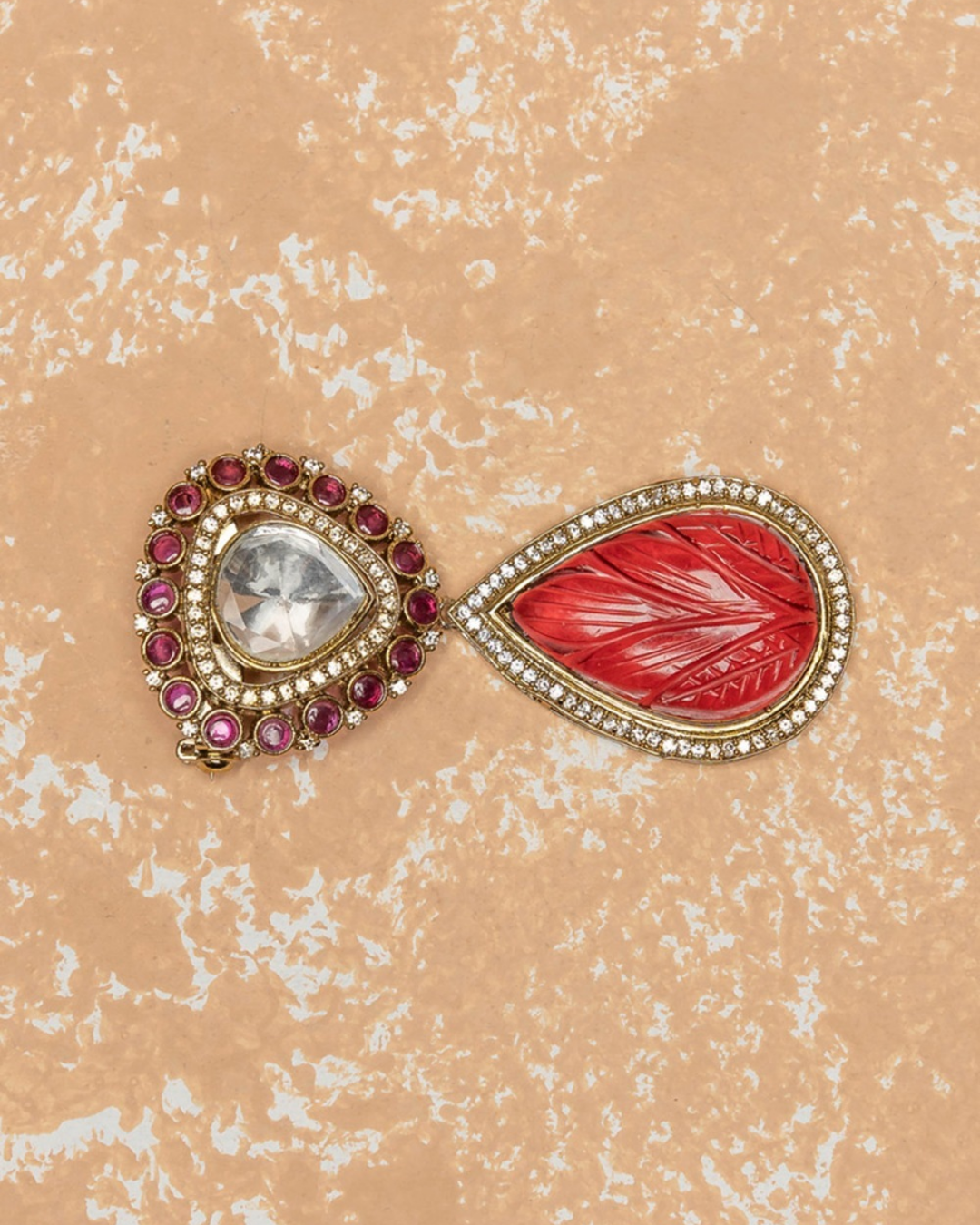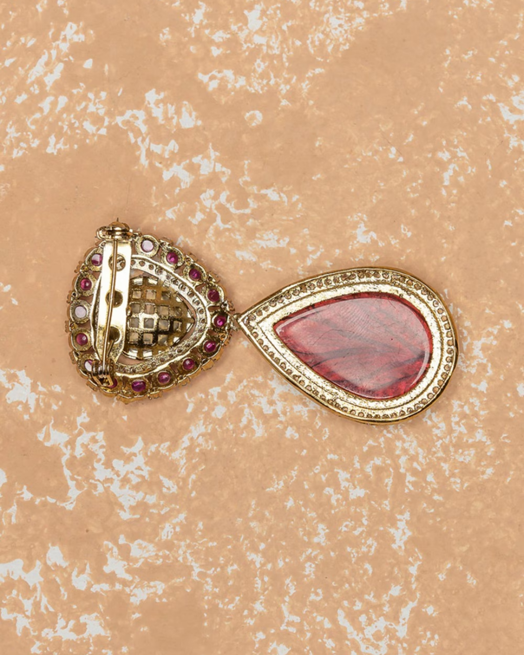 Safawala Red Drop Stone Designer Brooches | Groom Turban Pagdi Sherwani Wedding Accessory
