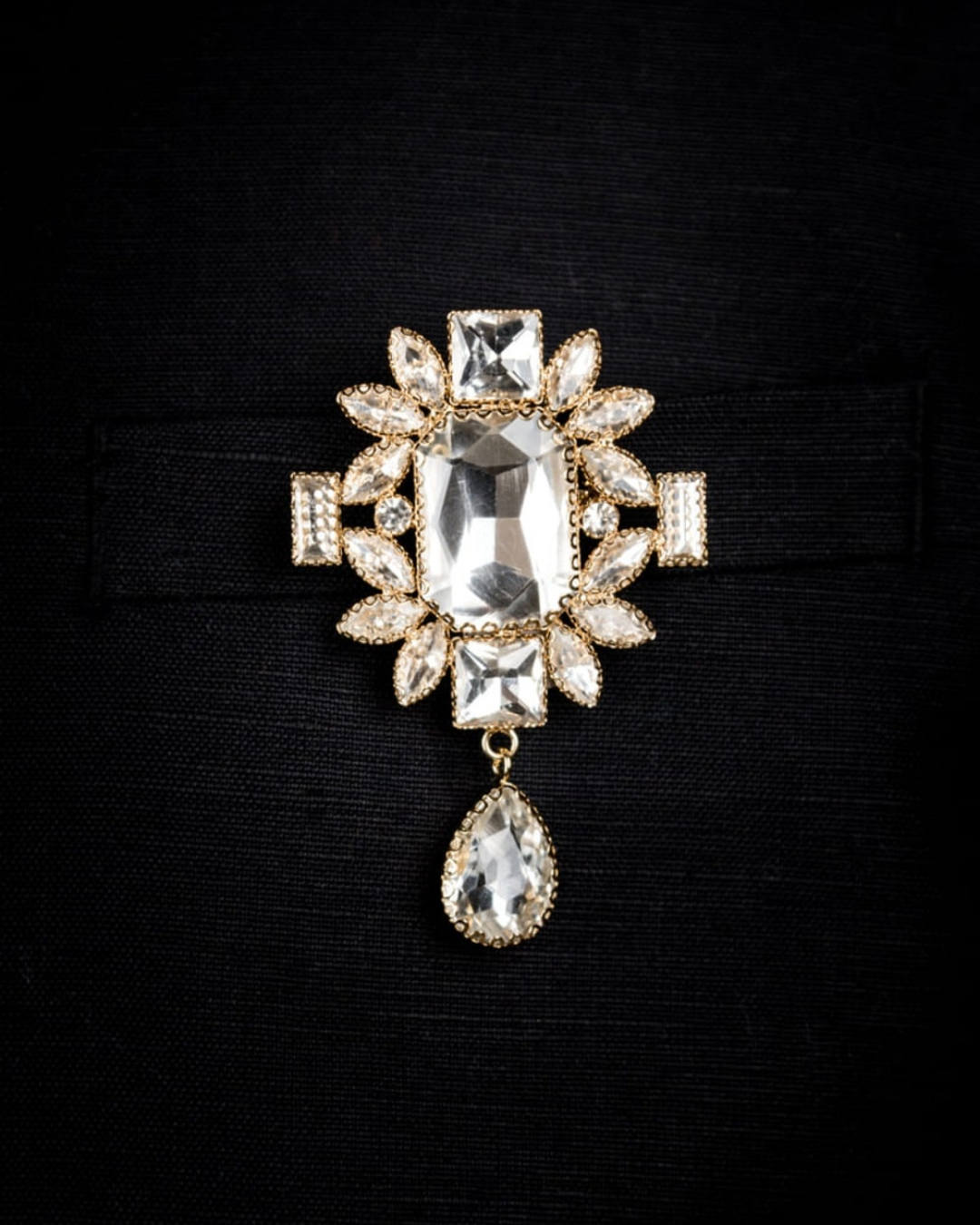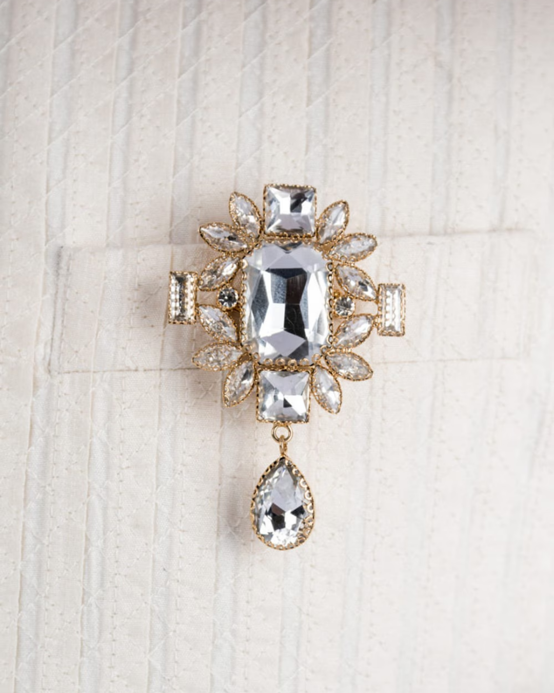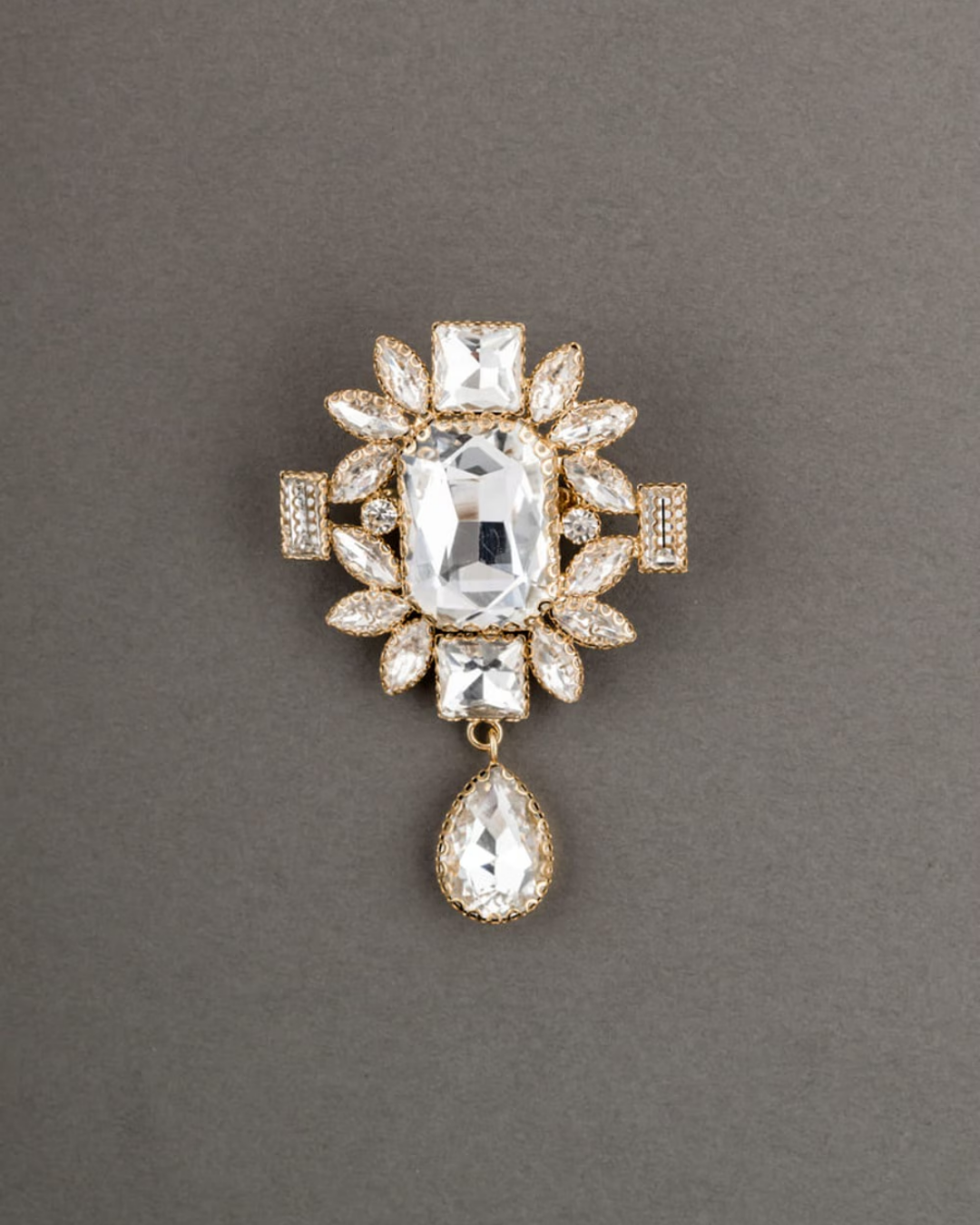 Safawala Silver Crystal Designer Brooches | Groom Turban Pagdi Sherwani Wedding Accessory