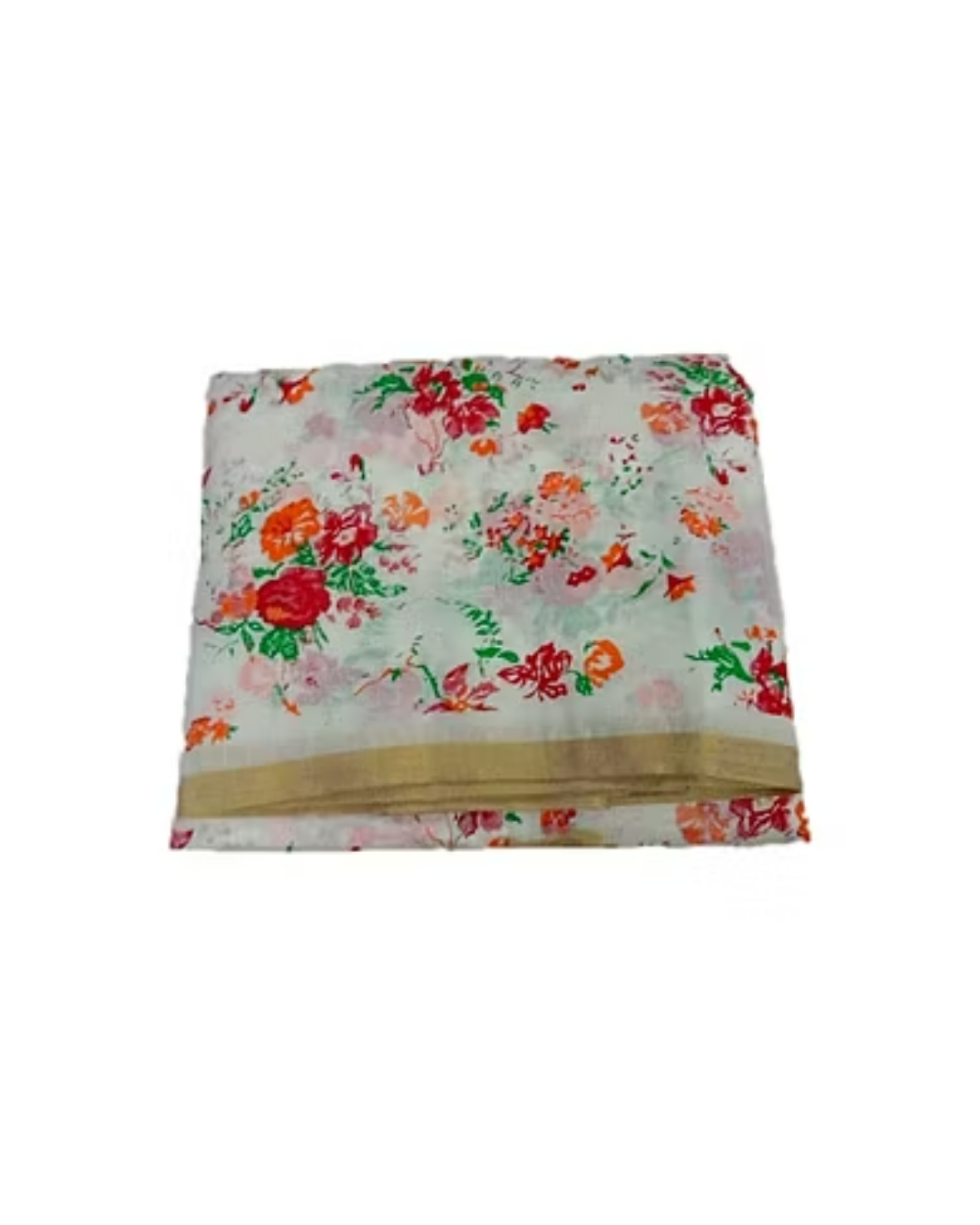 Safawala White Multi-Color Floral Printed Safa Cloth with Golden Border | Traditional Indian Wedding Fabric
