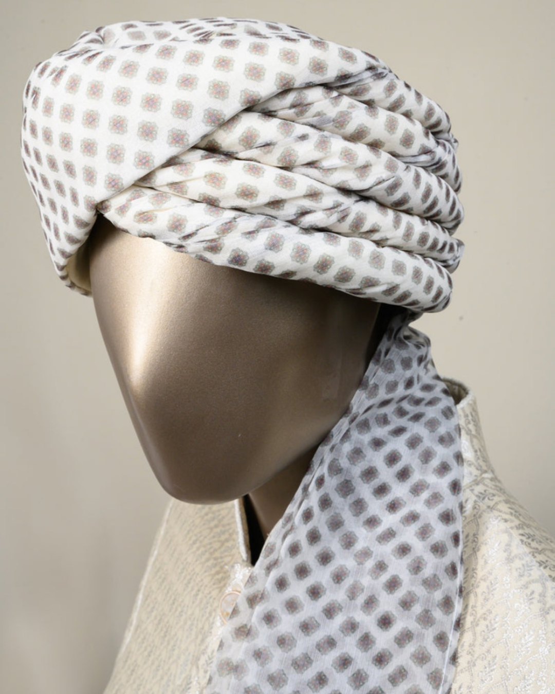 White Printed Feta Wedding Barati Safa Pagdi Turban | Traditional Indian Guest Wedding Accessory quantity